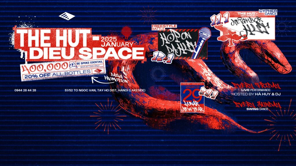 Tái nhận diện The Hut – từ hình ảnh một cocktail bar cổ điển, lịch lãm – trở thành một Cocktail Bar hợp thời đại và cá tính. Không gian mới tại tầng hầm sẽ là nơi hội tụ của cộng đồng hiphop Hà Nội: sống động, tự do.